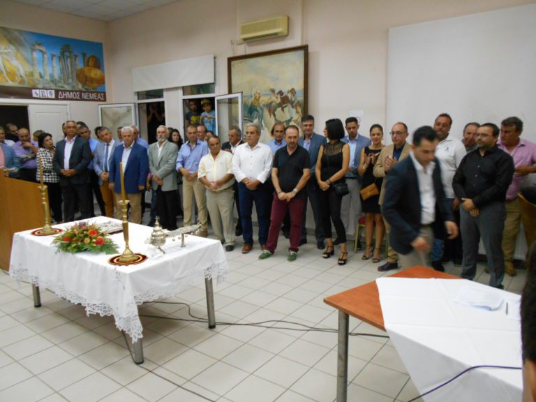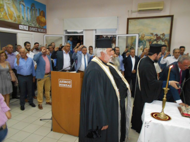 Τον αγιασμό και την τελετή της ορκωμοσίας τέλεσε ο Μητροπολίτης Κορινθίας Διονύσιος παρουσία, των βουλευτών Νίκου Ταγαρά και Μαριαλένας Σούκουλη, του Αντιπεριφερειάρχη Κορινθίας Αναστάσιου Γκιολή, του Δημάρχου Κορινθίων Βασίλη Νανόπουλου, του Δημάρχου Άργους Μυκηνών Δημήτρη Καμπόσου, περιφερειακών Συμβούλων, Εκλεγέντων Δημοτικών Συμβούλων, Συμβούλων Δημοτικών Κοινοτήτων, Συμβούλων Τοπικών Κοινοτήτων, Τοπικών Εκπροσώπων και πολύ κόσμου.