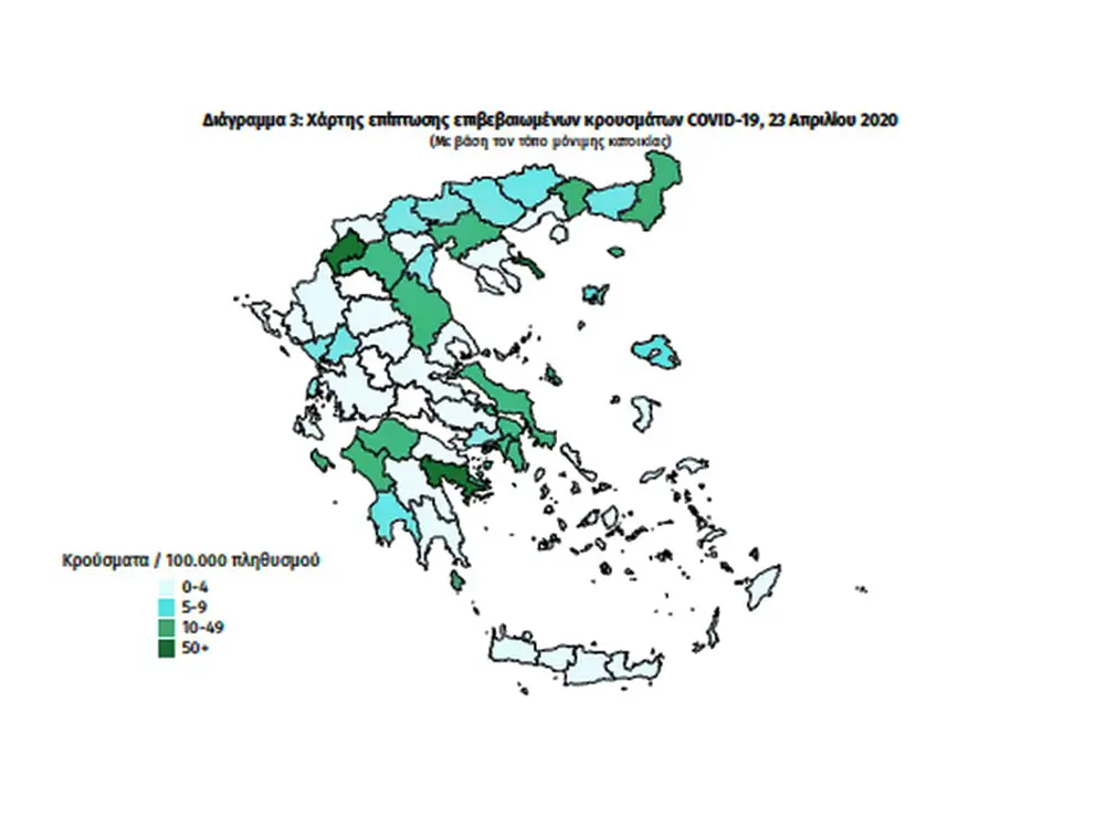 Εκ των αναφερόμενων κρουσμάτων τέσσερα (4) έχουν λάβει εξιτήριο μετά από νοσηλεία και εννέα (9) νοσηλεύονται έως σήμερα σε δημόσια νοσοκομεία. Ενας εκ των νοσηλευομένων εξήλθε από τη ΜΕΘ. Τα υπόλοιπα κρούσματα είναι προς το παρόν υπό παρακολούθηση λαμβάνοντας συγκεκριμένες οδηγίες. Ενας συμπολίτης μας έχασε τη ζωή του.