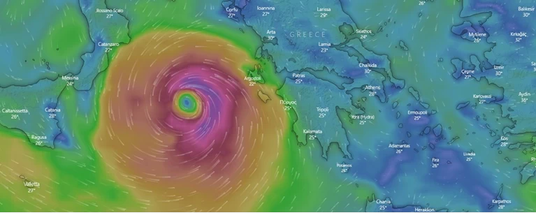Σύμφωνα με την τελευταία ενημέρωση από τη μετεωρολόγο του ΣΚΑΪ Χριστίνα Σούζη, ο κυκλώνας αυτή τη στιγμή είναι ακόμα ανοιχτά του Ιονίου.