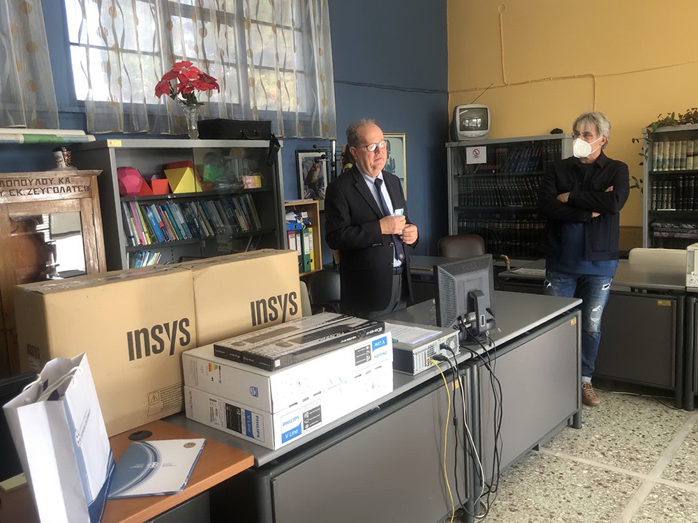Δύο ηλεκτρονικούς υπολογιστές παρέδωσε στο 1ο Λύκειο Τρίπολης, το οποίο επισκέφθηκε το πρωί σήμερα, Πέμπτη 18 Νοεμβρίου, ο περιφερειάρχης Πελοποννήσου Παναγιώτης Νίκας.