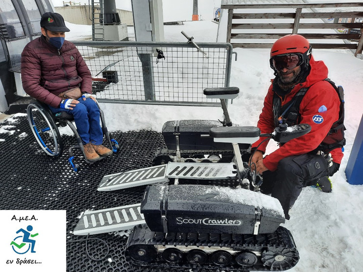 Δοκιμάσαμε και σας παρουσιάζουμε το χιονο - αμαξίδιο Ottobock ScoutCrawler στο Χιονοδρομικό Κέντρο Παρνασσού. Είναι ιδανικό για χρήστες αναπηρικού αμαξιδίου με μέτρια έως καλή λειτουργικότητα στα χέρια. Μπορεί να προσαρμόσει πάνω του τα περισσότερα χειροκίνητα αναπηρικά αμαξίδια και είναι ικανό να σηκώσει έως 145 κιλά ( βάρος χρήστη μαζί με το αμαξίδιό του ). Αναπτύσσει ταχύτητα μέχρι 6χλμ / ώρα, έχει αυτονομία μπαταρίας έως 12 χλμ και είναι ασφαλές μέχρι 17% κλίση. Επίσης, μπορεί να χρησιμοποιηθεί σε αμμώδη ή λασπώδη περιοχή.