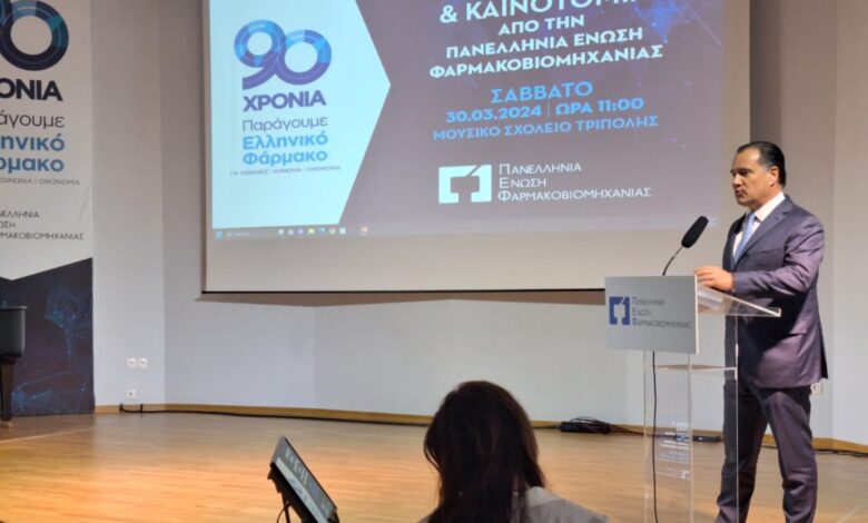 Φώτο: anagnostisΣε εκδήλωση της Πανελλήνιας Ένωσης Φαρμακοβιομηχανίας στην Τρίπολη, ο υπουργός Υγείας Άδωνις Γεωργιάδης, ανακοίνωσε νέα μέτρα για τον έλεγχο του clawback και τη διασφάλιση της διαθεσιμότητας φαρμάκων.