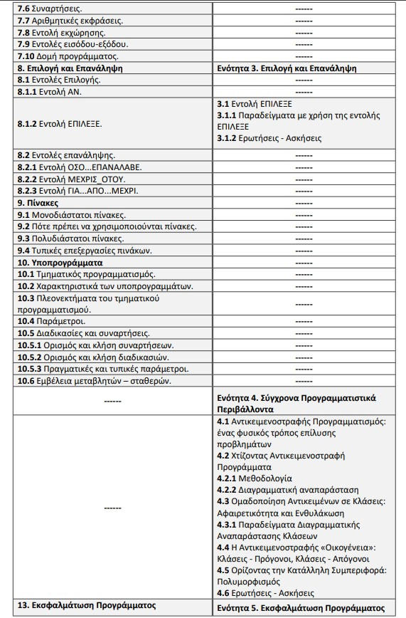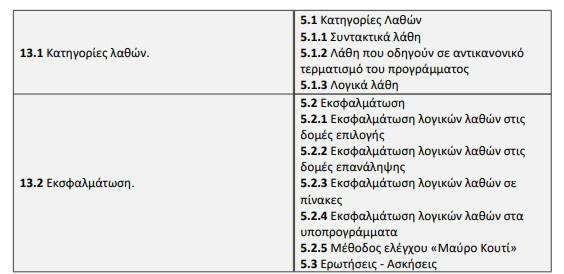• Στην εξεταστέα ύλη δεν περιλαμβάνονται: