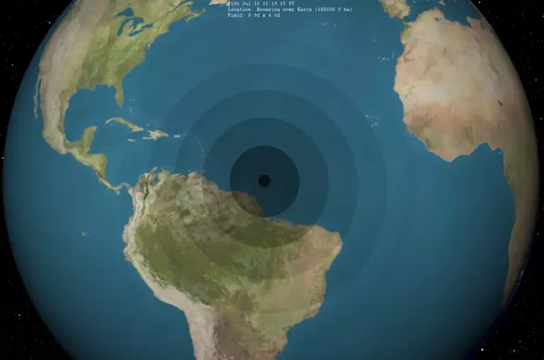 Εκείνη την ημέρα, η Σελήνη θα «καλύψει» τον Ήλιο, βυθίζοντας στο σκοτάδι χώρες στο νότιο ημισφαίριο μέχρι και 7 λεπτά και 29.22 δευτερόλεπτα – πολύ κοντά στο μέγιστο όριο των 7 λεπτών και 32 δευτερόλεπτων που μπορεί να διαρκέσει θεωρητικά μία ολική έκλειψη Ηλίου.