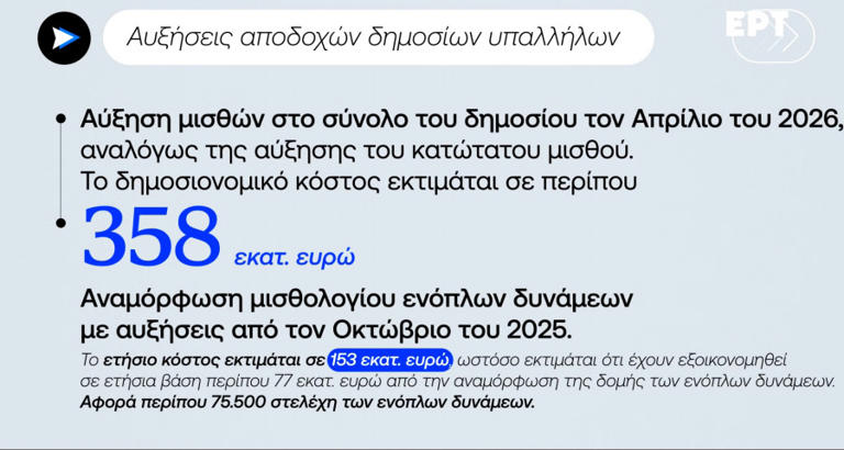 Αλλά αναμένονται και αυξήσεις 600εκ ευρώ για το 2026. Πρόκειται για την οριζόντια αύξηση τον Απρίλιο του 2026 με βάση τη αύξησή του κατώτατου μισθού.