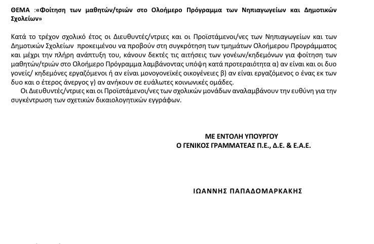 Η εγκύκλιος κόφτης για το Ολοήμερο που άνοιξε τον ασκό του Αιόλου