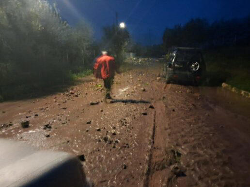 Συνολικά 5 φορτηγά γέμισαν με φερτά υλικά που «κατέβασαν» τα ορμητικά νερά ή με βράχους από τις κατολισθήσεις. Στην ίδια περιοχή σχηματίστηκε και καταρράκτης μιας και το έδαφος είναι ήδη κορεσμένο και δεν μπορεί να απορροφήσει το νερό της βροχής.